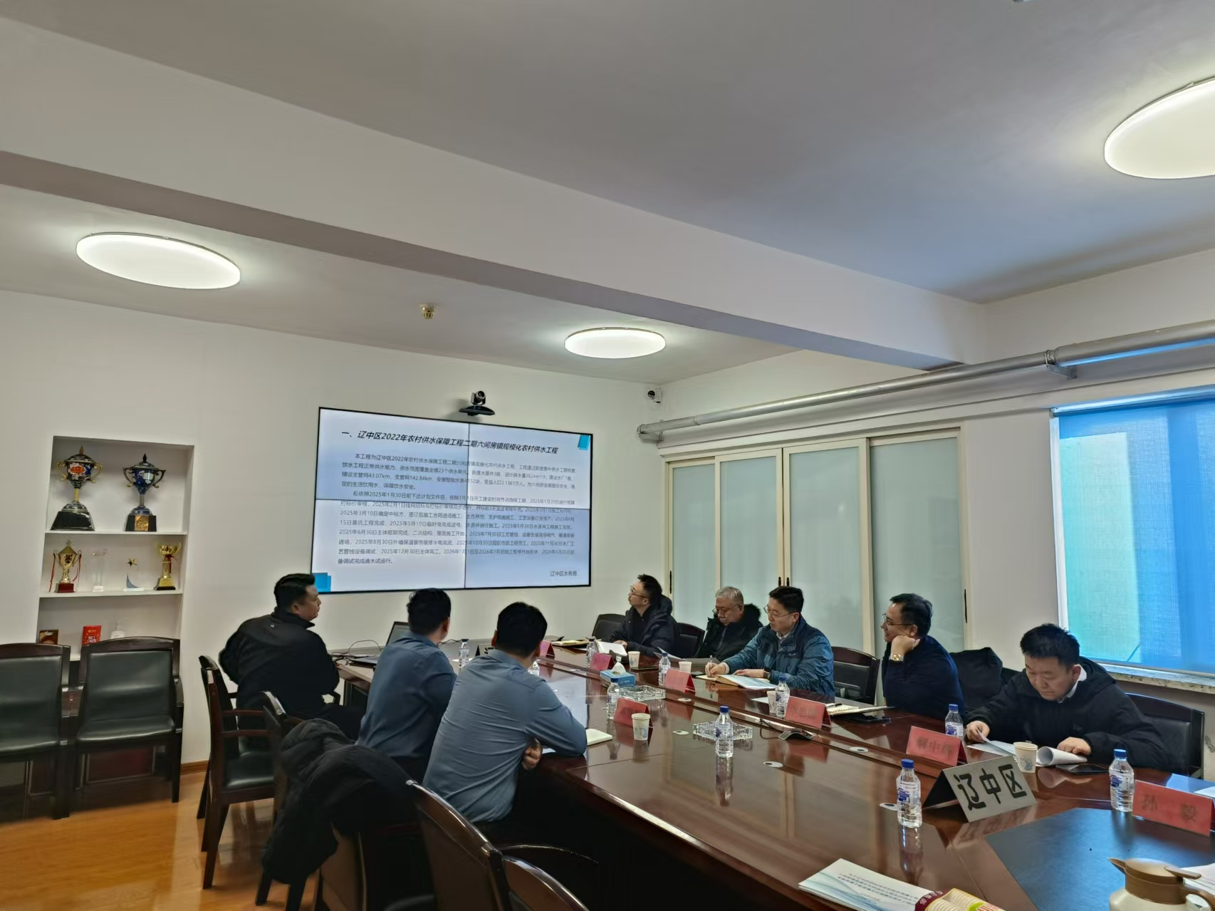 调研组听取了沈北新区、辽中区、康平县水利局工作汇报,并重点围绕农村供水规模化项目实施、农村供水工程运行管护和农村供水高质量发展规划项目谋划等方面与各地区相关工作人员进行了深入交流,对沈北新区、辽中区、康平县在农村供水重点工程项目上所做工作和取得成绩表示肯定,对项目中存在的问题和面临的挑战给予了建设性的意见和建议。